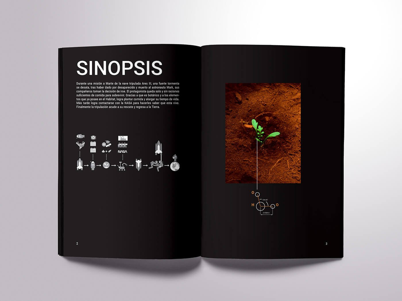 This project presents a system of graphic pieces for the science fiction film The Martian / Misión Rescate (2015), which includes a poster, pressbook, invitations (tickets), pins, a food container (pillbox with tic tacs) and a promotional piece (mug). The design seeks to reflect the essence of the film, offering coherent visual elements that enrich the audience’s experience and promote the film in a creative way.